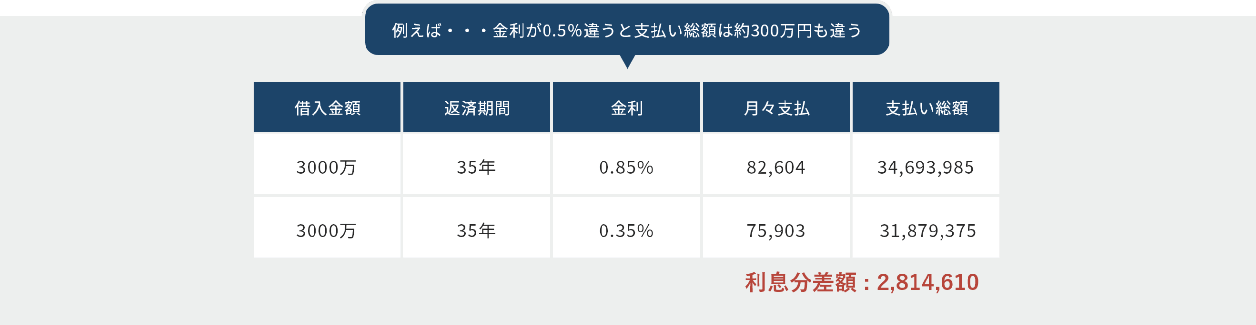 総支払額が大きく変わる住宅ローン選びのサポートをいたします。