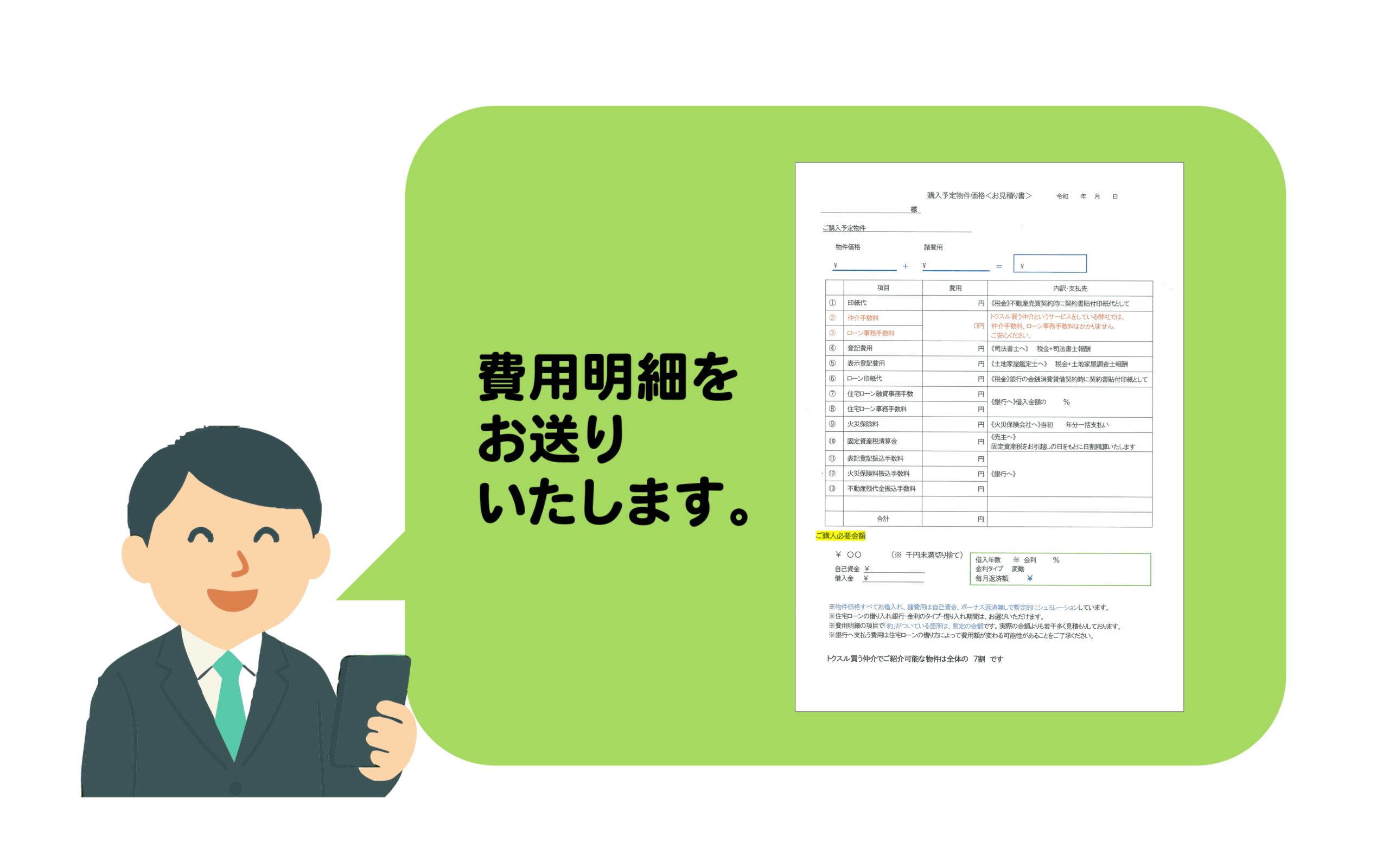 ・毎月の返済額 のご提案を作成して、物件の費用明細をLINEで送付いたします。